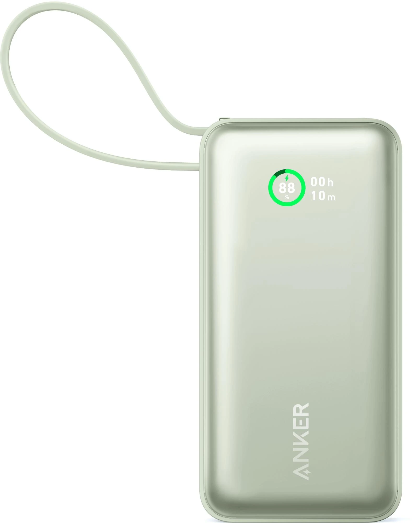 Klein und handlich, mit nur 104 × 52,3 × 26mm. Das eingebaute C- Kabel kann als Trageschlaufe verwendet werden, um die Powerbank