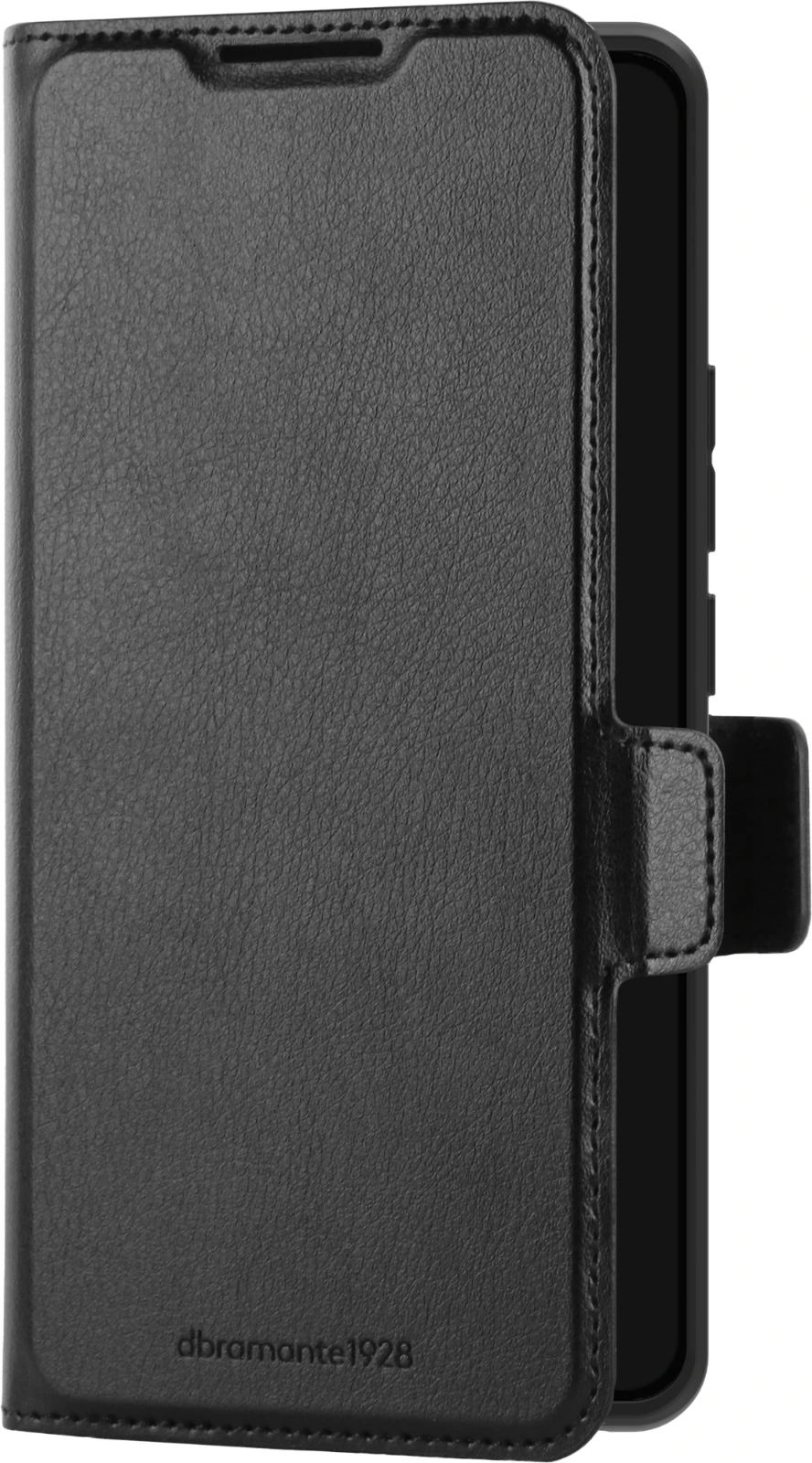 Die Klapphülle umfasst drei Kartenfächer mit Platz für bis zu fünf Kreditkarten und einen Magnetverschluss zur sicheren Aufbewahrung. Die faltbare Rückseite dient auch als horizontaler Ständer für freihändiges Videoschauen.